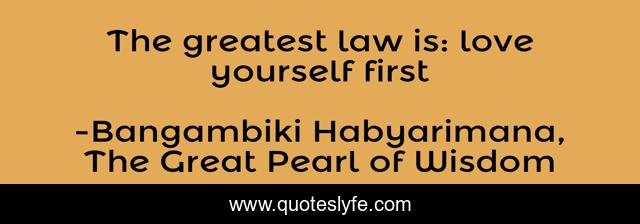 "Bangambiki Habyarimana, The Great Pearl of Wisdom Quotes." Quoteslyfe.com, 2025. Sat. 06 Dec. 2025. <https://www.quoteslyfe.com/quote/The-greatest-law-is-love-yourself-first-171671>.