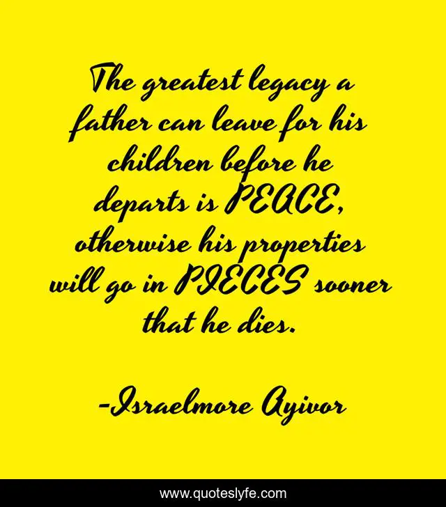 "Israelmore Ayivor Quotes." Quoteslyfe.com, 2025. Mon. 08 Dec. 2025. <https://www.quoteslyfe.com/quote/The-greatest-legacy-a-father-can-leave-100190>.