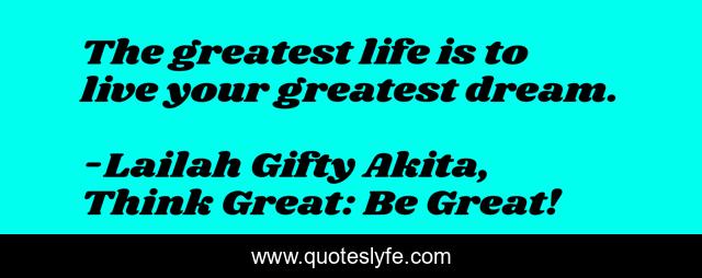 "Lailah Gifty Akita, Think Great: Be Great! Quotes." Quoteslyfe.com, 2025. Tue. 09 Dec. 2025. <https://www.quoteslyfe.com/quote/The-greatest-life-is-to-live-your-97255>.