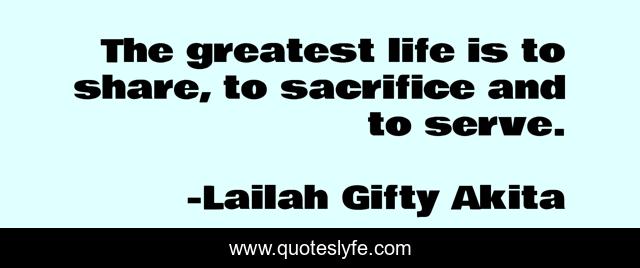 This page presents the quote "The greatest life is to share, to sacrifice and to serve.". Author of this quote is Lailah Gifty Akita. This quote is about life, service, giving, sacrifice, greatness, self-realization, inspirational, sharing-life, enthusiasm,.