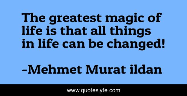 This page presents the quote "The greatest magic of life is that all things in life can be changed!". Author of this quote is Mehmet Murat ildan. This quote is about life, magic, change,.