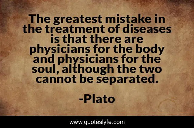 This page presents the quote "The greatest mistake in the treatment of diseases is that there are physicians for the body and physicians for the soul, although the two cannot be separated.". Author of this quote is Plato. This quote is about medicine, psychology, treatment,.
