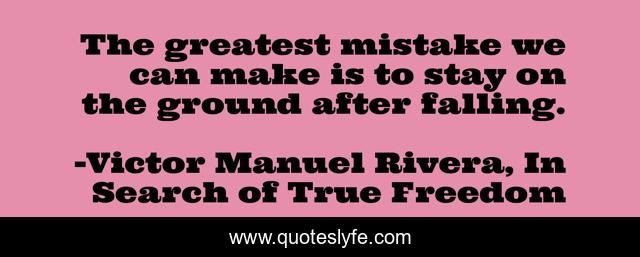This page presents the quote "The greatest mistake we can make is to stay on the ground after falling.". Author of this quote is Victor Manuel Rivera, In Search of True Freedom. This quote is about freedom, leadership, christian-living,.