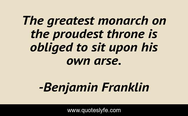 This page presents the quote "The greatest monarch on the proudest throne is obliged to sit upon his own arse.". Author of this quote is Benjamin Franklin. This quote is about celebrities, fame,.
