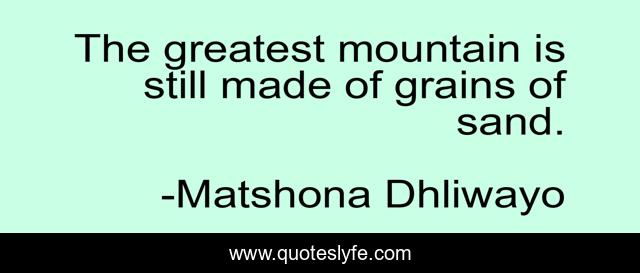 "Matshona Dhliwayo Quotes." Quoteslyfe.com, 2025. Fri. 05 Dec. 2025. <https://www.quoteslyfe.com/quote/The-greatest-mountain-is-still-made-of-189984>.