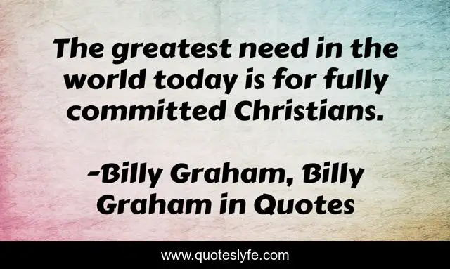 This page presents the quote "The greatest need in the world today is for fully committed Christians.". Author of this quote is Billy Graham, Billy Graham in Quotes. This quote is about billy-graham, christianity,.