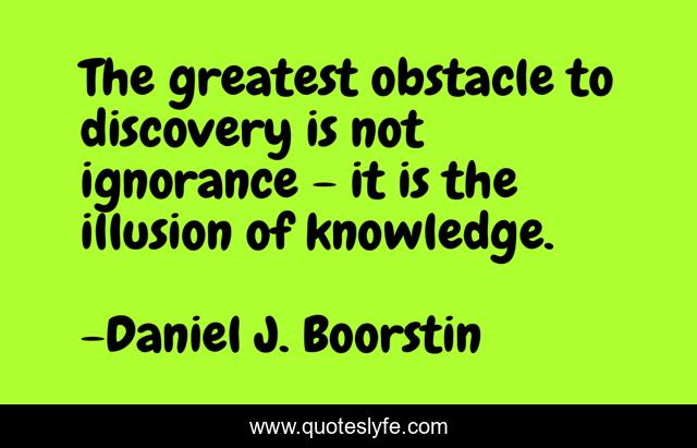 "Daniel J. Boorstin Quotes." Quoteslyfe.com, 2025. Fri. 05 Dec. 2025. <https://www.quoteslyfe.com/quote/The-greatest-obstacle-to-discovery-is-not-306757>.