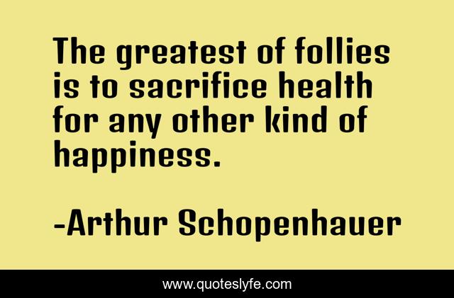 This page presents the quote "The greatest of follies is to sacrifice health for any other kind of happiness.". Author of this quote is Arthur Schopenhauer. This quote is about sacrifice, health, greatest,.