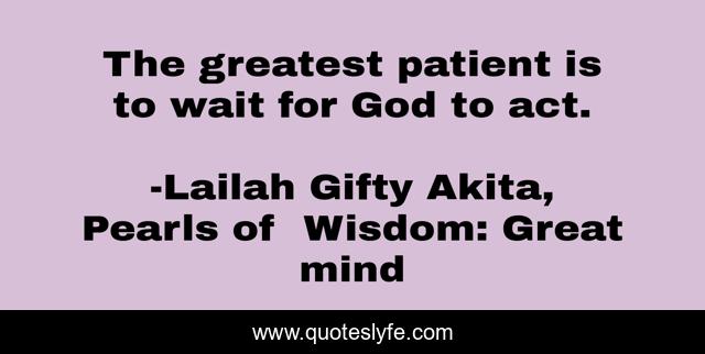 "Lailah Gifty Akita, Pearls of Wisdom: Great mind Quotes." Quoteslyfe.com, 2025. Fri. 05 Dec. 2025. <https://www.quoteslyfe.com/quote/The-greatest-patient-is-to-wait-for-111207>.