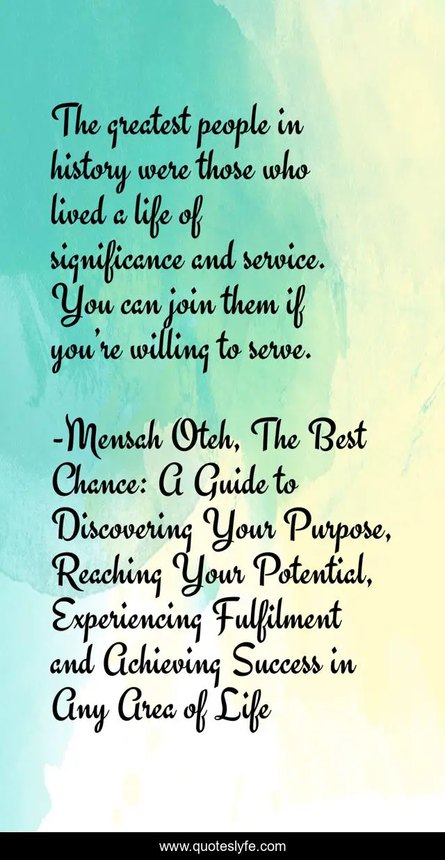 "Mensah Oteh, The Best Chance: A Guide to Discovering Your Purpose, Reaching Your Potential, Experiencing Fulfilment and Achieving Success in Any Area of Life Quotes." Quoteslyfe.com, 2025. Mon. 08 Dec. 2025. <https://www.quoteslyfe.com/quote/The-greatest-people-in-history-were-those-15720>.