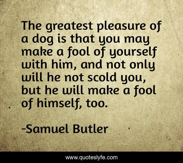 This page presents the quote "The greatest pleasure of a dog is that you may make a fool of yourself with him, and not only will he not scold you, but he will make a fool of himself, too.". Author of this quote is Samuel Butler. .