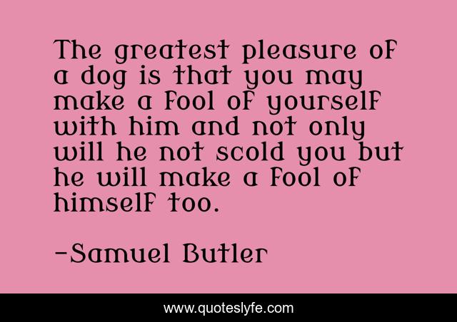This page presents the quote "The greatest pleasure of a dog is that you may make a fool of yourself with him and not only will he not scold you but he will make a fool of himself too.". Author of this quote is Samuel Butler. .