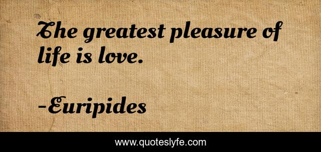 This page presents the quote "The greatest pleasure of life is love.". Author of this quote is Euripides. This quote is about pleasure, life, greatest,.