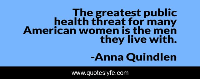 This page presents the quote "The greatest public health threat for many American women is the men they live with.". Author of this quote is Anna Quindlen. This quote is about american, men, women,.