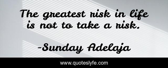 This page presents the quote "The greatest risk in life is not to take a risk.". Author of this quote is Sunday Adelaja. This quote is about life, greatest, risk,.