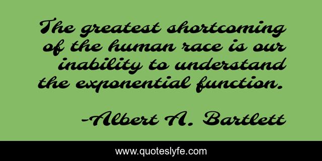 This page presents the quote "The greatest shortcoming of the human race is our inability to understand the exponential function.". Author of this quote is Albert A. Bartlett. This quote is about life, science, sustainable-development, sustainability, exponential-growth, humanity,.