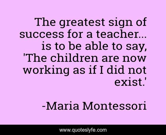 This page presents the quote "The greatest sign of success for a teacher... is to be able to say, 'The children are now working as if I did not exist.'". Author of this quote is Maria Montessori. This quote is about children, success, greatest,.
