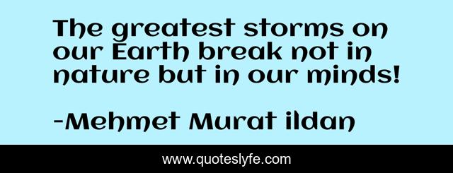 This page presents the quote "The greatest storms on our Earth break not in nature but in our minds!". Author of this quote is Mehmet Murat ildan. This quote is about nature, storms, mind, minds, greatest, storm, earth,.