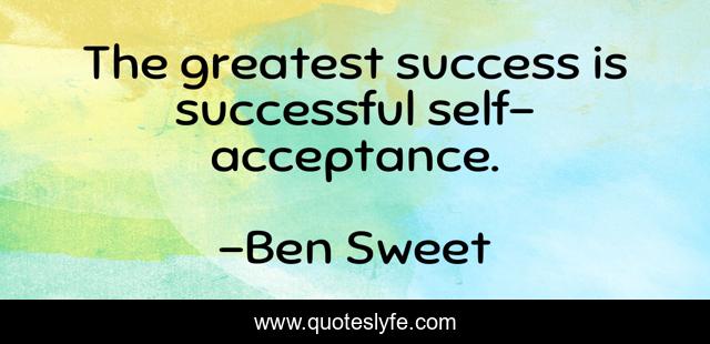 This page presents the quote "The greatest success is successful self-acceptance.". Author of this quote is Ben Sweet. This quote is about self, knowledge,.