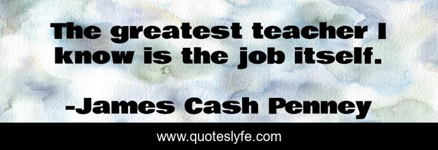 This page presents the quote "The greatest teacher I know is the job itself.". Author of this quote is James Cash Penney. This quote is about job, teacher, greatest,.