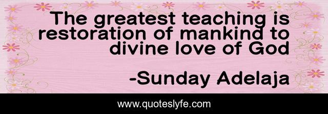 This page presents the quote "The greatest teaching is restoration of mankind to divine love of God". Author of this quote is Sunday Adelaja. This quote is about great, love, god, restoration, mankind, teaching, divine, affection,.