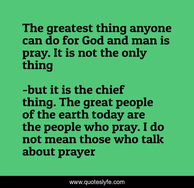 "but it is the chief thing. The great people of the earth today are the people who pray. I do not mean those who talk about prayer Quotes." Quoteslyfe.com, 2025. Fri. 05 Dec. 2025. <https://www.quoteslyfe.com/quote/The-greatest-thing-anyone-can-do-for-114522>.