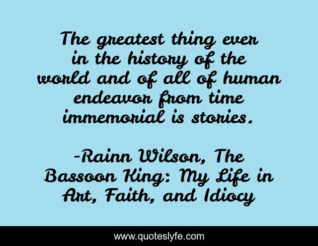 This page presents the quote "The greatest thing ever in the history of the world and of all of human endeavor from time immemorial is stories.". Author of this quote is Rainn Wilson, The Bassoon King: My Life in Art, Faith, and Idiocy. .