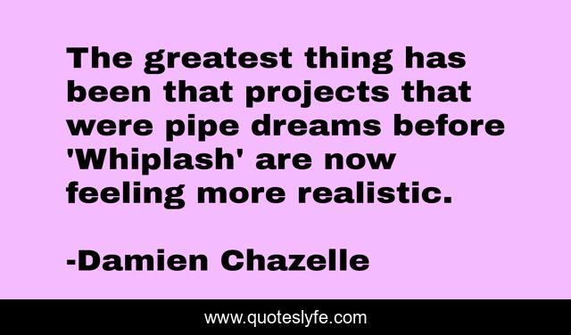 This page presents the quote "The greatest thing has been that projects that were pipe dreams before 'Whiplash' are now feeling more realistic.". Author of this quote is Damien Chazelle. This quote is about realistic, feeling, greatest,.