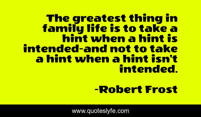 This page presents the quote "The greatest thing in family life is to take a hint when a hint is intended-and not to take a hint when a hint isn't intended.". Author of this quote is Robert Frost. This quote is about life, greatest, family life,.