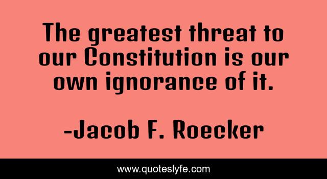 "Jacob F. Roecker Quotes." Quoteslyfe.com, 2025. Fri. 05 Dec. 2025. <https://www.quoteslyfe.com/quote/The-greatest-threat-to-our-Constitution-is-241746>.