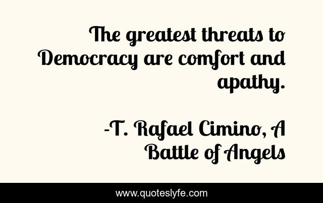 "T. Rafael Cimino, A Battle of Angels Quotes." Quoteslyfe.com, 2025. Sat. 06 Dec. 2025. <https://www.quoteslyfe.com/quote/The-greatest-threats-to-Democracy-are-comfort-200195>.