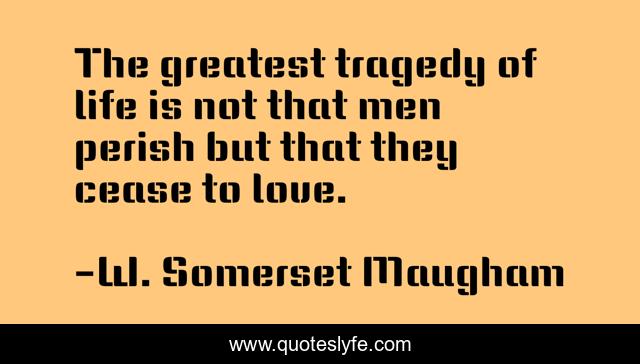 This page presents the quote "The greatest tragedy of life is not that men perish but that they cease to love.". Author of this quote is W. Somerset Maugham. .