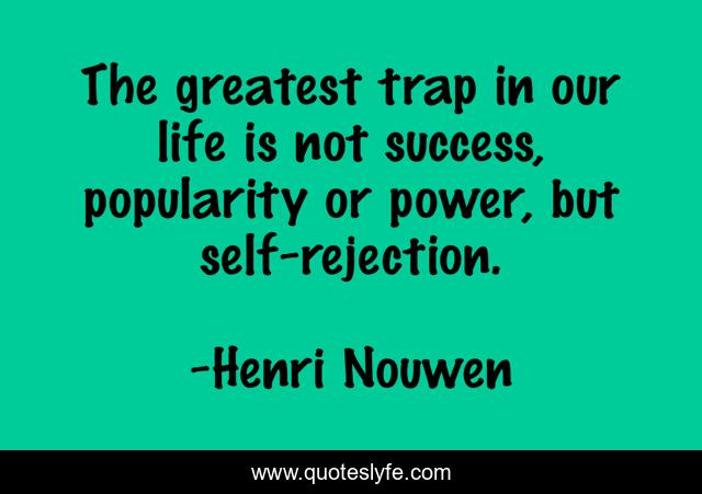 This page presents the quote "The greatest trap in our life is not success, popularity or power, but self-rejection.". Author of this quote is Henri Nouwen. This quote is about life, greatest, success,.