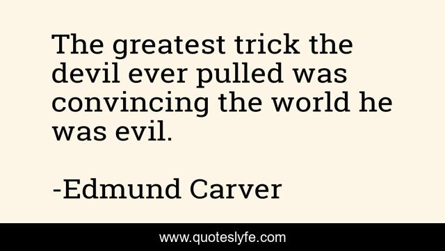 This page presents the quote "The greatest trick the devil ever pulled was convincing the world he was evil.". Author of this quote is Edmund Carver. This quote is about devil, lucifer, evil,.