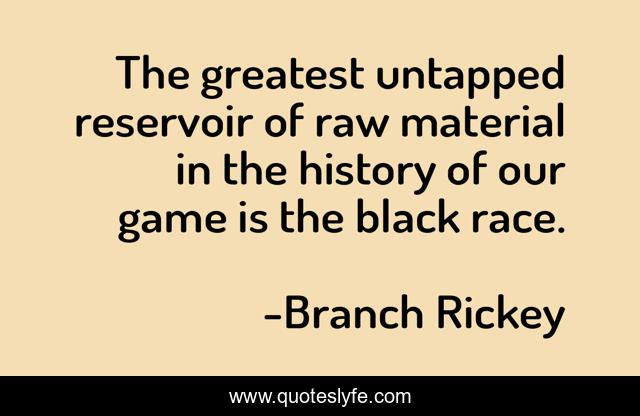 This page presents the quote "The greatest untapped reservoir of raw material in the history of our game is the black race.". Author of this quote is Branch Rickey. This quote is about game, black, greatest,.