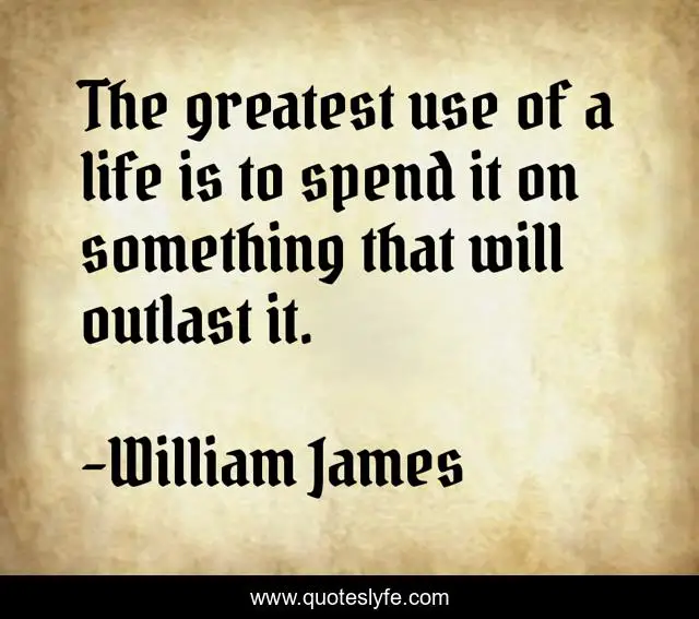 This page presents the quote "The greatest use of a life is to spend it on something that will outlast it.". Author of this quote is William James. This quote is about greatest, spend,.