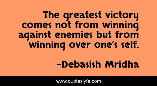 This page presents the quote "The greatest victory comes not from winning against enemies but from winning over one’s self.". Author of this quote is Debasish Mridha. This quote is about self-awareness, philosophy, debasish-mridha, winning-against-enemies, quotes, winning-over-one-s-self, inspirational, enthusiasm, debasish-mridha-m-d,.