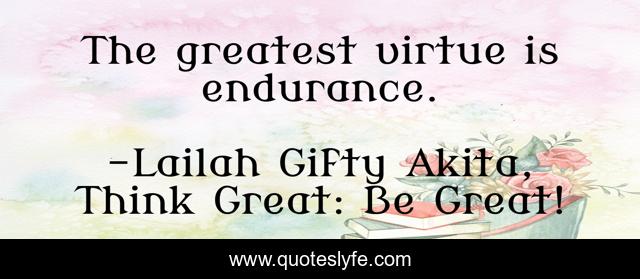 "Lailah Gifty Akita, Think Great: Be Great! Quotes." Quoteslyfe.com, 2025. Fri. 05 Dec. 2025. <https://www.quoteslyfe.com/quote/The-greatest-virtue-is-endurance-169150>.
