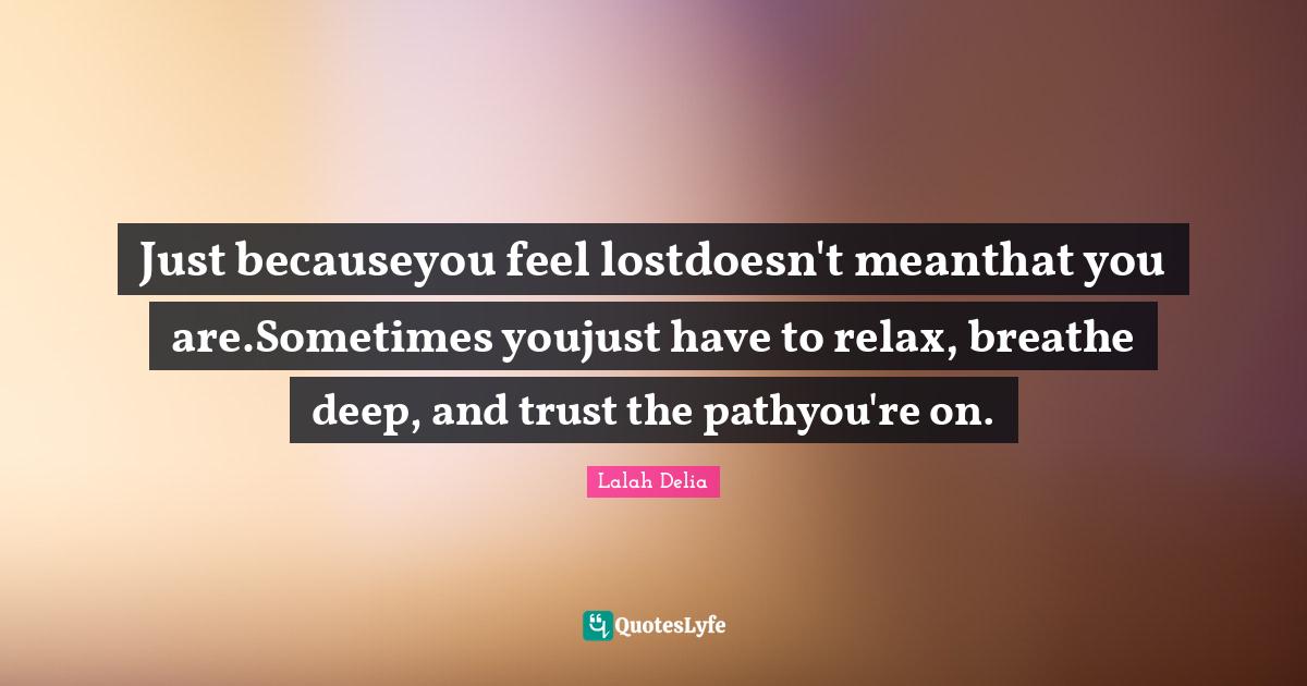 Just becauseyou feel lostdoesn't meanthat you are.Sometimes youjust have to relax, breathe deep, and trust the pathyou're on.