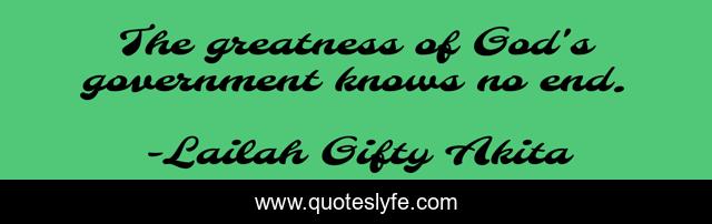 This page presents the quote "The greatness of God's government knows no end.". Author of this quote is Lailah Gifty Akita. This quote is about christian, government, god, unending, ruler, judge,.