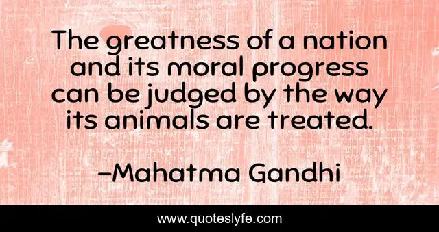 This page presents the quote "The greatness of a nation and its moral progress can be judged by the way its animals are treated.". Author of this quote is Mahatma Gandhi. This quote is about ethics, animals, gandhi, morals,.