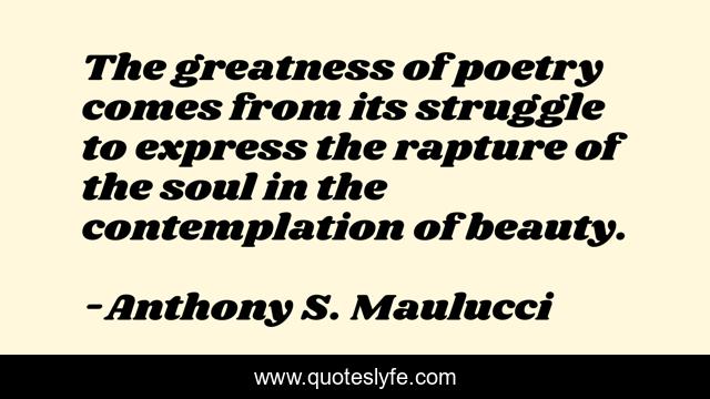 This page presents the quote "The greatness of poetry comes from its struggle to express the rapture of the soul in the contemplation of beauty.". Author of this quote is Anthony S. Maulucci. .