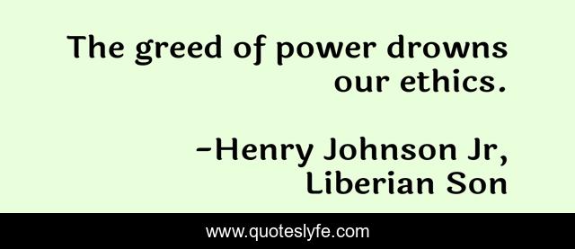 "Henry Johnson Jr, Liberian Son Quotes." Quoteslyfe.com, 2025. Mon. 08 Dec. 2025. <https://www.quoteslyfe.com/quote/The-greed-of-power-drowns-our-ethics-88362>.