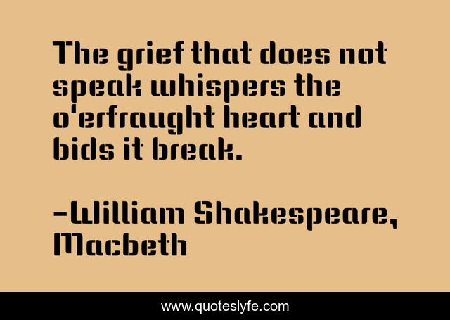 "William Shakespeare, Macbeth Quotes." Quoteslyfe.com, 2025. Sat. 06 Dec. 2025. <https://www.quoteslyfe.com/quote/The-grief-that-does-not-speak-whispers-123784>.