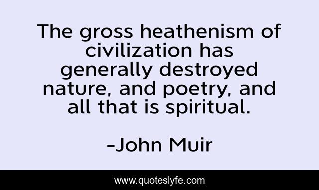 This page presents the quote "The gross heathenism of civilization has generally destroyed nature, and poetry, and all that is spiritual.". Author of this quote is John Muir. This quote is about spiritual, poetry,.