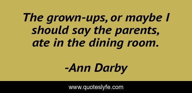 This page presents the quote "The grown-ups, or maybe I should say the parents, ate in the dining room.". Author of this quote is Ann Darby. This quote is about humor, family,.