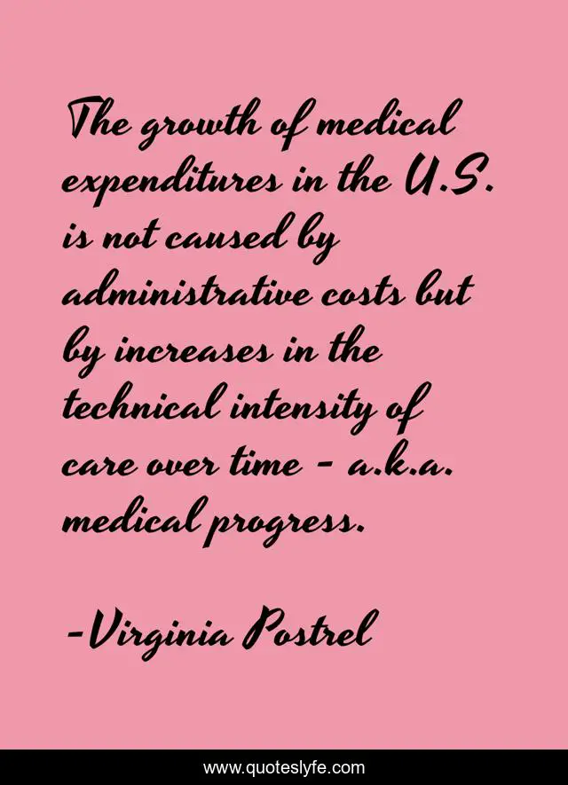 This page presents the quote "The growth of medical expenditures in the U.S. is not caused by administrative costs but by increases in the technical intensity of care over time - a.k.a. medical progress.". Author of this quote is Virginia Postrel. This quote is about progress, growth, time,.