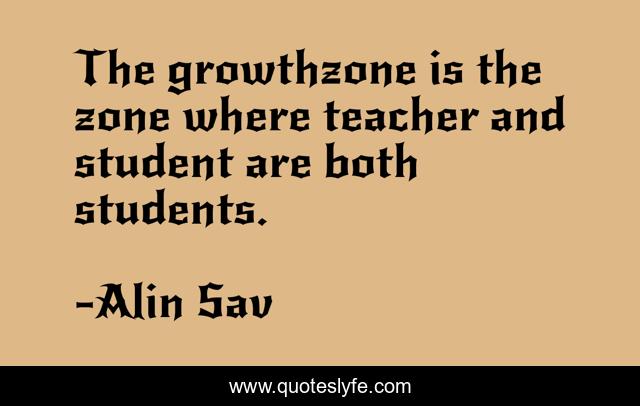 This page presents the quote "The growthzone is the zone where teacher and student are both students.". Author of this quote is Alin Sav. This quote is about enthusiasm, educational, leadership, inspirational,.