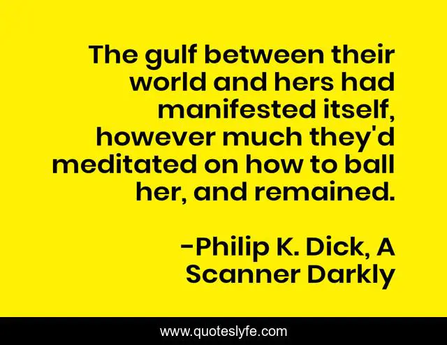 "Philip K. Dick, A Scanner Darkly Quotes." Quoteslyfe.com, 2025. Sat. 06 Dec. 2025. <https://www.quoteslyfe.com/quote/The-gulf-between-their-world-and-hers-181183>.