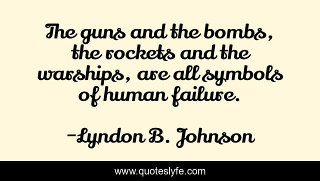 This page presents the quote "The guns and the bombs, the rockets and the warships, are all symbols of human failure.". Author of this quote is Lyndon B. Johnson. This quote is about symbols, guns, human,.